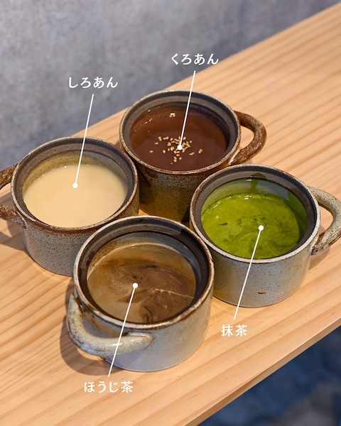 優しい甘さが特徴の白あんソース。まろやかな口当たりで、どんな和菓子とも相性抜群。スタッフ一押しの味わいです。